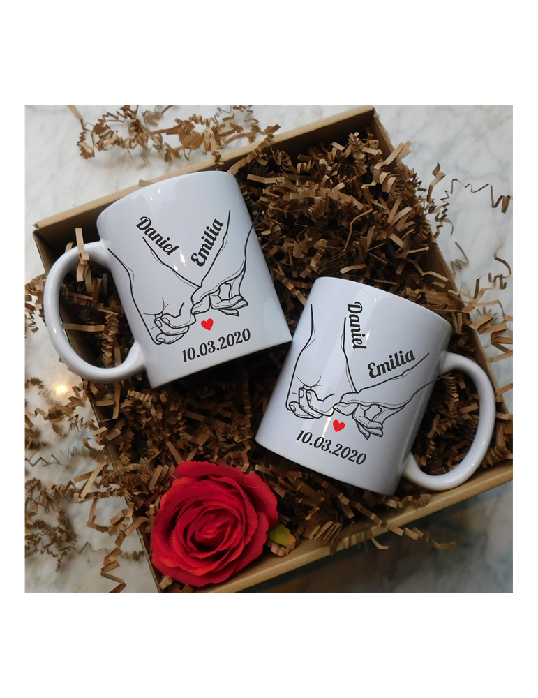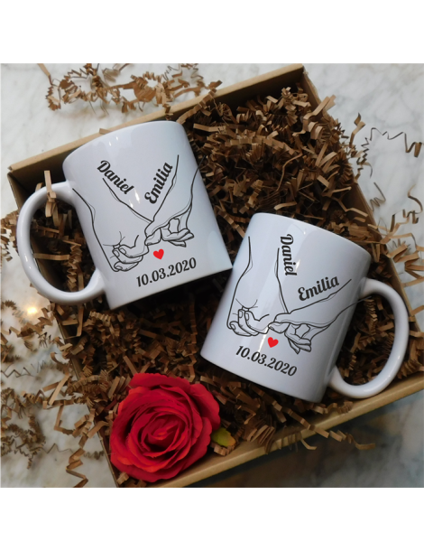 Zestaw kubków dla pary ręce personalizowany (3) w pudełku