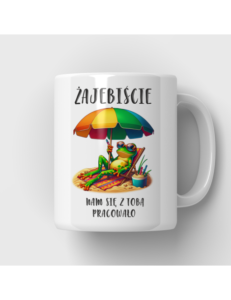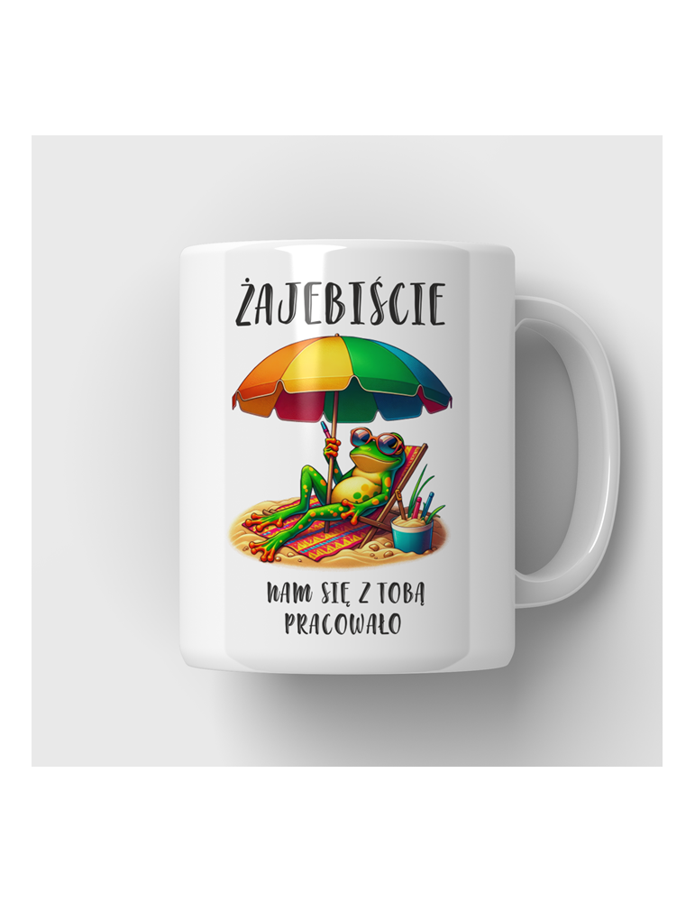 Wysokiej jakości nadruk sublimacyjny zapewnia trwałość kolorów i wyrazistość grafiki. Żaba na kubku symbolizuje lekkość i humor, a napis „Żajebiście nam się z Tobą pracowało” dodaje kubkowi wyjątkowego charakteru, który z pewnością wywoła uśmiech.